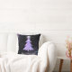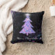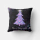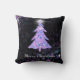 Uma árvore brilhante de Natal com estrela é um design gráfico original. Árvore de natal azul-rosa e prateada, brilhante, azul e cintilante, com rajada branca brilhante no topo, sobre um fundo preto, com cor-de-rosa-prateado cintilante e rajadas de luz roxa. Um travesseiro de feriado brilhante. Excelente para o período de férias, ou Natal em julho.