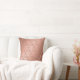 Travesseiro decorativo rosa de árvore de natal dourado.