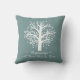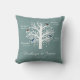 O travesseiro decorativo da lembrança da família, a árvore branca com nomes & as datas, adicionam os nomes dos pais e a data do casamento no tronco da árvore. Quatro pássaros na árvore, com sala adicionar nomes e aniversários para até quatro crianças. Para trás do travesseiro tem a mesma árvore branca, e abaixo da árvore, o seguinte texto: ~ dos ~Beginnings uma árvore genealógica nova. Branco no travesseiro Cinza-Azul com os pássaros vermelhos & azuis