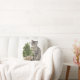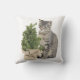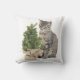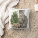 Cinza stripped kitten olhando mal para um pinheiro pequeno.