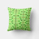 Este travesseiro decorativo tem um design moderno século médio de linhas verticais pretas com linhas verticais marrons e círculos verdes.