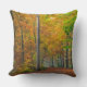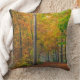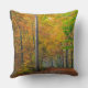 O coxim do travesseiro decorativo da foto com as árvores de folhas mortas com folha em cores da queda e as folhas caídas em um trajeto em uma floresta na reserva natural de Hoge Veluwe nos Países Baixos durante o outono temperam.