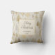 Árvores de Natal Douradas e prateadas em fundo branco são de uma árvore de coloração aquática de pinheiro. Esta versão elegante é apresentada num travesseiro fino quadrado. "Feliz Natal" é um texto editável. Certifique-se de alterar os nomes de exemplo e o ano.