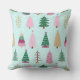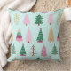 Árvores de Natal e Travesseiro decorativo de Padrão do Bolinhas. Existe um padrão moderno de árvores de Natal bócoras com um fundo azul gelado de um lado e um padrão de bolinhas de coordenação do outro lado. O travesseiro é reversível e pode ser usado de ambas as maneiras.
