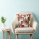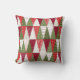 Este travesseiro decorativo tem um padrão de árvores de Natal num estilo minimalista de design de triângulos geométricos. Esta é a saída verde e vermelha. Você pode fazer o padrão neste travesseiro menor ou maior. Um belo travesseiro decorativo de Natal moderno, com padrão, que será excelente em sua casa para seu decoro de Natal vermelho e verde.