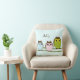 Travesseiro bonito feito em uma luz - fundo azul do acento do quarto da criança. Os gráficos dos desenhos animados um azul e marrom, de um cor-de-rosa e de um marrom e uma coruja verde e marrom que senta-se em ramos verdes decoram a parte dianteira e a parte traseira do travesseiro. Personalize o texto marrom lunático para sua sala de criança.