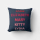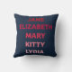 Travesseiro com os nomes das irmãs Bennet em diferentes tons de rosa do Orgulho e Preconceito de Jane Austen: Jane, Elizabeth, Mary, Gatinho e Lydia. Um travesseiro excelente para amantes de livros e fãs de Jane Austen. © Bookish e Maravilha