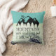 As montanhas estão chamando e eu devo ir, John Muir cita travesseiro decorativo, apresentando montanhas, árvores e rochas com decoração e tipografia de roteiro contra a turquesa e o verde. Ideal para a sua cabana, camper, cama e café da manhã, ou só porque você tem um desejo desesperado! Um presente de excelente para o viajante, campista e aventureiro.