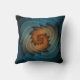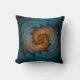 Travesseiro decorativo com "assobio na obscuridade" de um design abstrato por Susan Wallace. © 2008 de Copyright, Susan Wallace. A lâmina afiou a espiral da laranja vívida em um fundo textured do azul de turquesa.