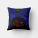 Uma abóbora assustadora com uma coruja em uma árvore acima. Um fundo azul noturno azul moderno sobre o fundo do céu. Design muito divertido e assustador para seus travesseiros decorativos decorativos de Halloween.