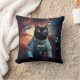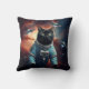 Uma imagem cativante de um gato negro vestido de astronauta, olhando com confiança para o cosmos. Cercado por discos voadores e nebulosa vibrante, o gato incorpora um senso de aventura e mistério.