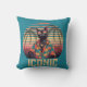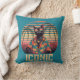Travesseiro decorativo de Atitude Tropical de Gato eterno: Um gato preto, vestindo óculos de sol de tamanho excessivo e uma camisa havaiana, atingindo uma pose legal com um pôr de sol tropical atrás dela.