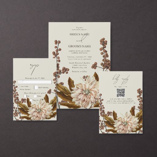 Um elegante tom de terra cai no design de casamento da caligrafia de aquarela. Um design de outono rústico que usa sombras de cobre e flores botânicas junto com tipografia de caligrafia de script de vintagem. Um design de assinatura de caligrafia castanho-tinto-suja, beige outono, ideal para todos os tipos de casamentos. Um clássico design de manutenção de casamento sazonal com elementos simplistas. Os convites de casamento e outros artigos de papelaria também estão disponíveis.