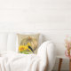 Travesseiro decorativo de outono/outono único e moderno apresenta a ilustração da cor da água de um girassol, um fino amarelo e uma abóbora sobre o fundo da areia e da bolinhas branca.