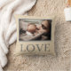Celebre o nascimento do seu bebê enfeitando seu berçário com este belo travesseiro fotográfico personalizado moderno que diz AMOR em letras fáceis de ler. Personalize com sua própria foto que se senta em um bonito quadro duplo em tons suaves de cinza contra um fundo bege neutro.