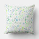 Travesseiro com pássaros primaveras brilhantes e alegres e borboletas com um padrão de rabiscos em tons azuis e verdes.