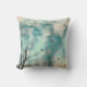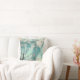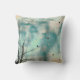Pássaros em árvores misturados com padrões de tinta aquosa em um bonito travesseiro.
