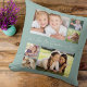Celebre a vovó com este travesseiro personalizado de manutenção de colagem de fotos com um roteiro branco de na moda e tipografia contra um fundo verde-claro. Você pode personalizar com seis fotos da família de netos, familiares, animais de estimação etc., e personalizar a expressão para "Eu te amo" ou "nós te amamos", e se ela é chamada "vovó", "vovó", "mamã" etc. Você também pode adicionar os nomes dos netos e o ano.