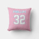 Adicione um nome e número(s) para personalizar este travesseiro decorativo personalizado de pinstripes brancas, cor-de-rosa e azure blue sport jersey. É um excelente presente para um fã ou atleta desportivo. O design é o mesmo na frente e atrás.