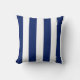 Listras largas e azuis profundas em um travesseiro decorativo de designer. travesseiros decorativos riscados fazem decoração de sotaque de excelente contra sofás, cadeiras e designs de quarto de cor padronizada e sólida. Perfeito para barcos domésticos, salas de estar, quartos, cascos, casas de praia e quartos para crianças.