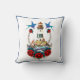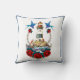 Elevem seu tema náutico com este brilhante travesseiro decorativo azul, vermelho e branco com um farol e flores vermelhas. Perfeito para sotaques de decoração de casa exclusivos.