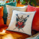 Elevem seu tema náutico com este brilhante travesseiro decorativo azul, vermelho e branco com coração e flores vermelhas. Perfeito para sotaques de decoração de casa exclusivos.