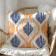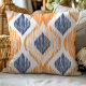Almofada Azul Marinho e Laranja Padrão Ogee Ikat