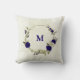 Lindo travesseiro romântico com flores azul royal e bege e algumas folhas .