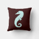 parte do oceano intitulada decor SEAHORSE azul em travesseiro castanho