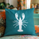Almofada Azul Teal e Lagosta Branca