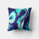 Arte digital azul e turquesa despeja travesseiro de pintura fluida. Bonito cores do oceano para uma casa de praia!