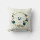 Lindo travesseiro romântico com flores azul turquesa e bege e algumas folhas .