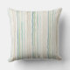 Este travesseiro decorativo de creme tem listras de cor d'água em azul, verde, aqua e bege.