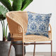 Almofada Azulejo Espanhol Azul e Branco Floral Damasco