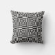 Travesseiro decorativo elegante com azulejo geométrico preto e branco.