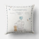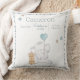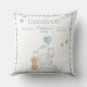 Este travesseiro personalizado de manutenção de bebês apresenta uma ilustração do estilo de aquarela fofo. Um pequeno elefante bebê é fotografado no fundo do cobrir, segurando um balão azul em forma de coração. Uma pilha de blocos de alfabeto é colocada à sua frente. Um nome de amostra é impresso no topo, seguido dos detalhes de nascimento do bebê recém-nascido. A data, hora e peso são indicados. Você pode personalizar o travesseiro para incluir seu próprio nome personalizado e outro texto.