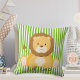 Um leão bonito e bebê em safari sobre um fundo de verde limão e listras brancas. Personalize ambos os lados com modelos de texto à direita para sua conveniência. Bebê Safari Lion Graphics Credit Prettygrafik.com.