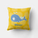 Baleia Azul Estilizada de Desenho Animado Fofo em um Fundo Amarelo Brilhante com Bolinhas Grandes e Gordas, Decoração de Quarto de Bebê, Almofada Personalizada com Nome da Criança.