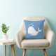 parte do oceano tem o tema decor de baleia branca em travesseiro azul de um lado e tiras brancas de baleias nas costas.