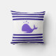 Baleia em Travesseiro decorativo marinho náutico azul e branco listrado.