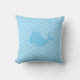 Silhueta de baleia em ondas azul turquesa ou almofada de lançamento de círculos contínuos. A baleia está apenas na parte frontal.