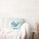 Este travesseiro decorativo personalizado apresenta uma baleia branca e engraçada em um vibrante esquema de cor rosa e azul nadando brincando com um pequeno chapéu.