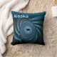 Uma imagem fractal azul parecida com um grupo giratório de baleias sob gelo polar; talvez beluga ou baleias-da-índia que frequentam os polos. A leitura de texto "Alaska" aparece em azul e branco brilhantes. Adicione texto adicional no verso.