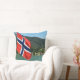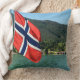 Travesseiro decorativo com a bandeira norueguesa em uma balsa de carro entre Solvorn e Urnes em um fiorde em Noruega.