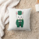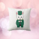 Você gosta de travesseiros bonitinhos? Este travesseiro decorativo apresenta um adorável coelho branco vestindo um uniforme de banda verde e dourando enquanto toca clarinete.