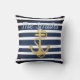 Almofada Bandas Azuis e Âncora Dourada Náutica