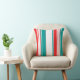 Ambos os lados deste travesseiro têm um padrão ousado de listras brancas, vermelhas e lacrimejantes em tamanhos variados. Moderno, colorido e definitivamente adicionará cor de excelente a qualquer sala.