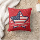 Bandeira americana em forma de estrela. o fundo é vermelho com estrelas pequenas. Feliz 4 de julho