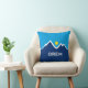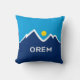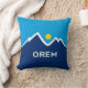 Travesseiro com a bandeira de Orem, Utah. Uma bandeira azul, branca e amarela com picos de montanha e o sol no centro
