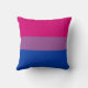 Travesseiro decorativo com a bandeira do orgulho da bissexualidade com poucos corações no centro da design. Sinalizador cor-de-rosa, roxo e azul do movimento do orgulho bi; com um campo de texto editável para seu nome ou mensagem